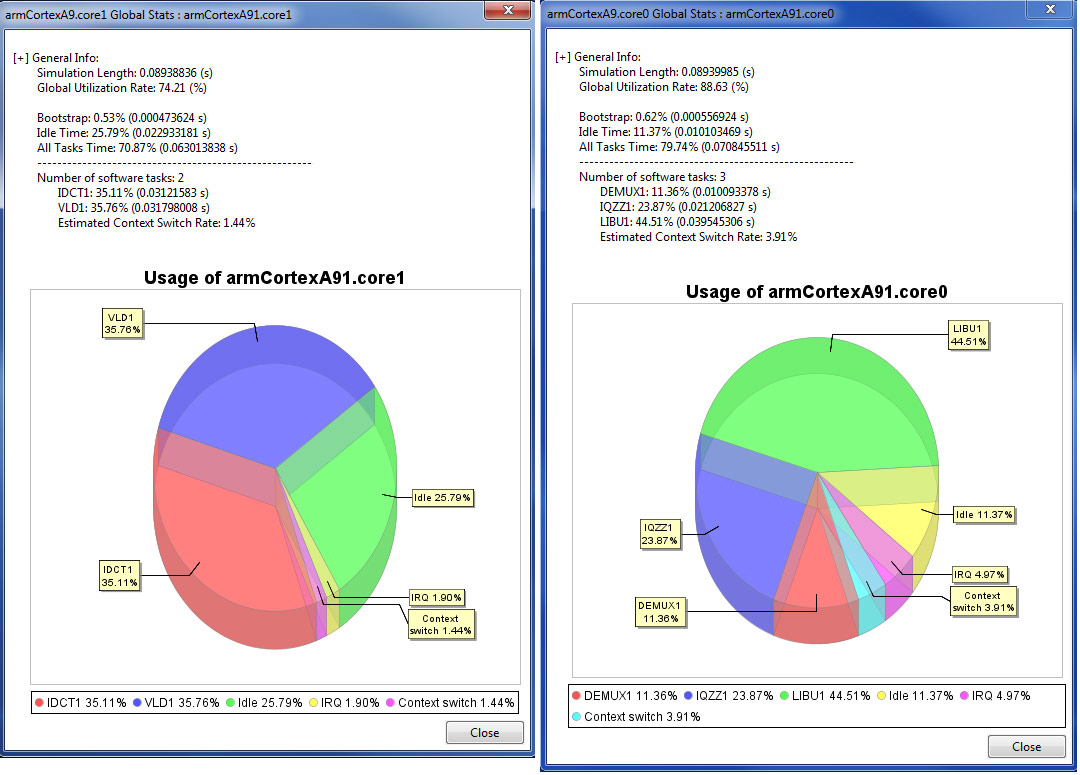 SpaceMonitor: 単一のARM Cortex-A9に対してMJPEGアーキテクチャを適用した場合のプロセッサのタスク 負荷およびタスクのスケジューリングの例